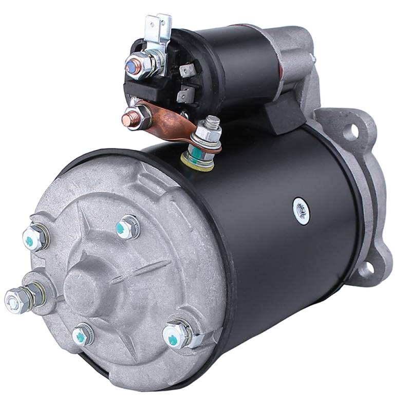 Direct OEM replacement Lucas type starter motor. 12V, DD (Direct Drive), clockwise rotation, 10-tooth pinion. New aftermarket replacement for all referenced OEM part numbers. Fits listed equipment applications.