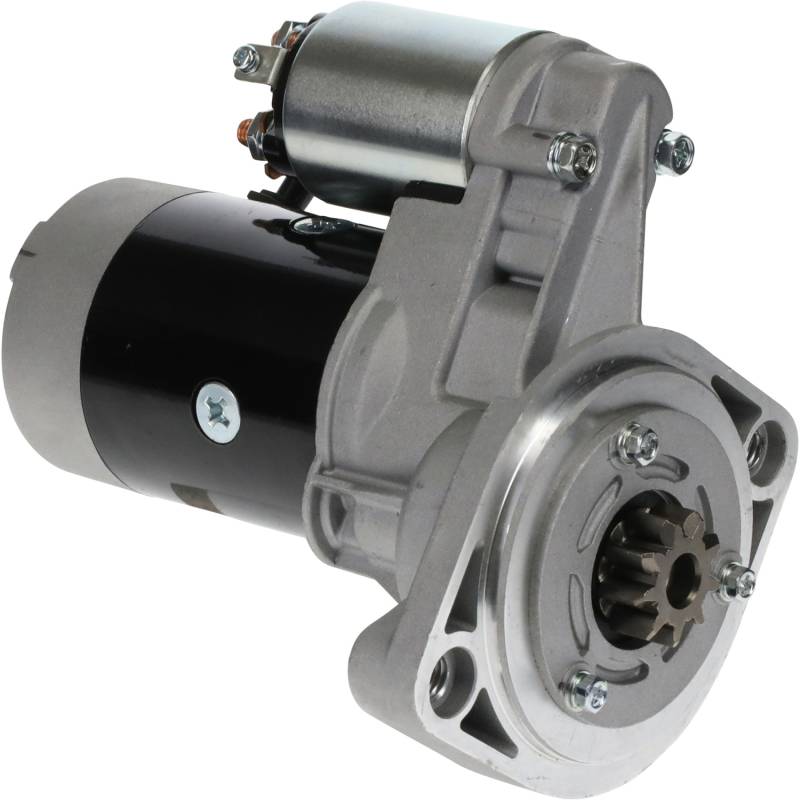 Brand new 12V OSGR starter for Thermo King transport refrigeration trailer and truck units with Isuzu 2.0L TK C201 diesel engine. Also fits John Deere 125/24A/JD24A skid steer loaders and Carrier Transicold units. Direct OEM replacement for Hitachi S13-84B, Isuzu 8944299780, Thermo King 45-1285/845-1285, and John Deere AT111635/AM108722. Features 9-tooth clockwise pinion, 2.0 kW output, and dual M12 threaded mounting.