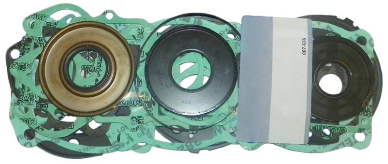 Complete gasket kit for the Polaris SL 750 and SLT 750 personal watercraft. Both models are powered by a Fuji 744cc 2-stroke 3-cylinder inline triple engine with a 68mm bore and 68mm stroke producing 80 horsepower. The engine uses case reed induction and triple 38mm Mikuni carburetors. This kit includes all gaskets needed for a complete engine rebuild including head gaskets, base gaskets, exhaust gaskets, reed gaskets, and crankcase seals. Always clean all mating surfaces thoroughly and torque all fasteners to factory specifications during reassembly. Inspect cylinder bores and pistons for wear before installing new gaskets.
