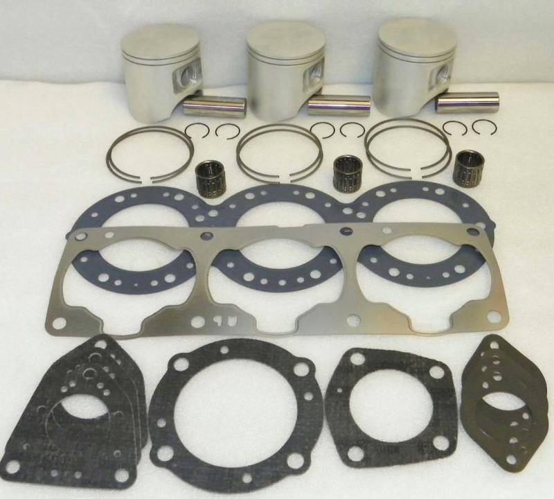 • Kit Includes: 3 Pistons, 3 Ring Sets, 3 Wrist Pins (22mm), 3 Bearings, 6 Circlips, Complete Top End Gasket Set
