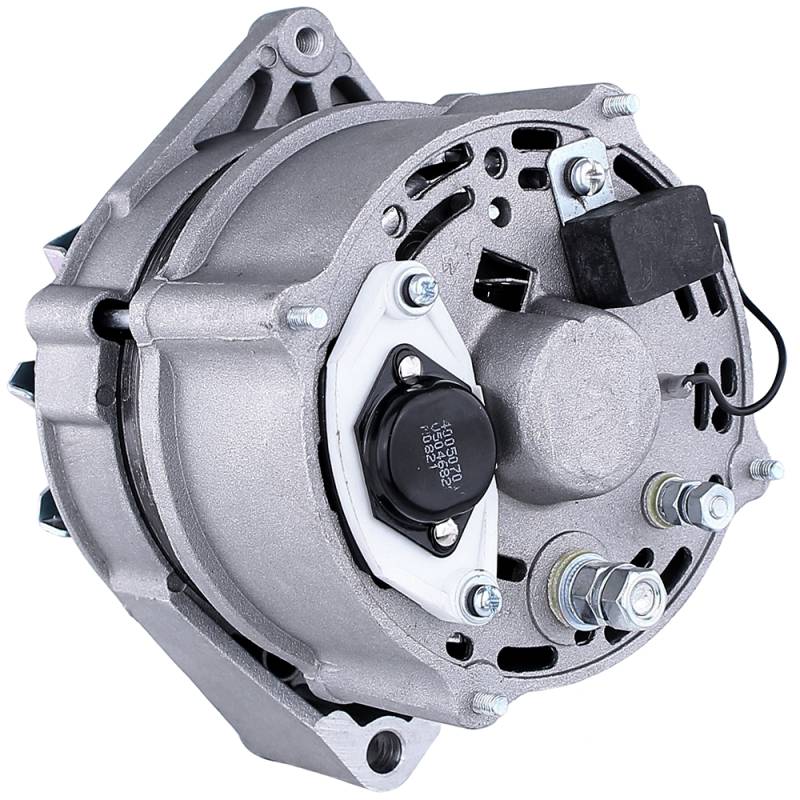 Direct replacement -type 12V 65A alternator for Case backhoe loaders and crawler tractors (1983-2007). Spool mount with 5-groove pulley. Replaces 0120489475, AL9959X, Case A187873, Cummins 3604480RX, Hella 8EL737217001, IHC A181873, JD 69X56677B, Letrika 11204382.