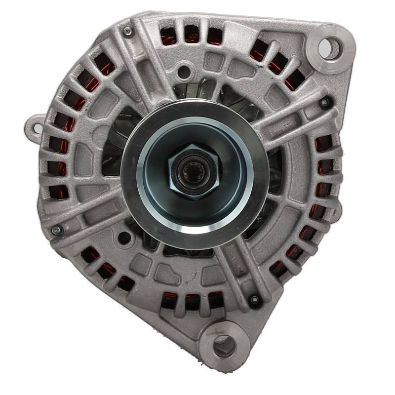 24 volt 100 amp alternator for 700K, 750K, 755K, and 850K crawler dozers with JD PowerTech 6.8L diesel engines (2012-2014). Bosch IR/IF design with internal fan and regulator. Clockwise rotation. 8-groove solid serpentine pulley, spool mount. Direct replacement for Bosch 0124655081, 0124655190, 0124655189 and SE502563, RE538241, RE558676.