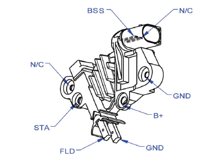 • Terminal ID: BSS (COM), N/C, GND, B+, STA, FLD