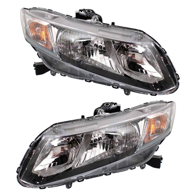 New Pair Of Halogen Headlight Compatible With Honda Civic Lx Hf Sedan 2013-2015 By Part Number