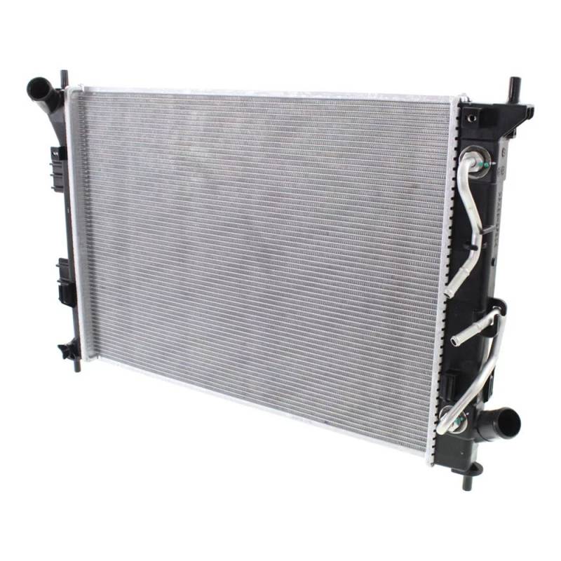 This OEM replacement radiator delivers direct-fit performance with a 1-row aluminum core, plastic tanks, and integrated transmission oil cooler for reliable cooling in the Kia Soul hatchback platform.