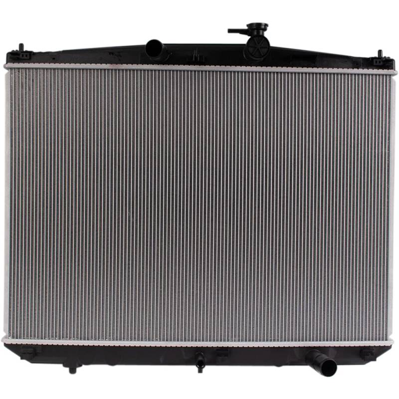 OEM replacement radiator with aluminum core and reinforced plastic tanks. Engineered for reliable cooling in Toyota mid-size family SUV V6 applications including gas and hybrid powertrains with direct bolt-on OEM fitment in FWD and AWD.