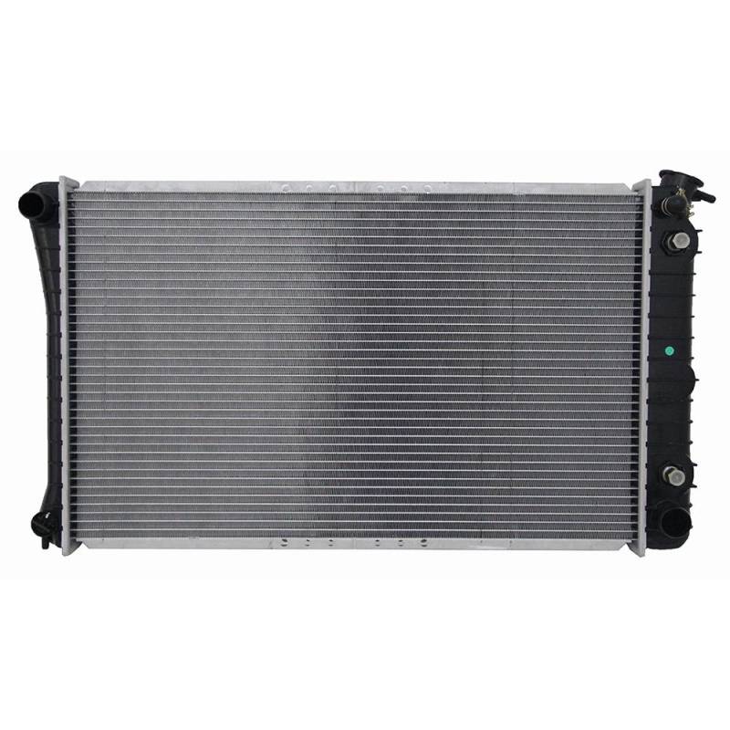 Radiator - 1986-1993 GM FWD 3.8L V6 PlatformThis OEM replacement radiator is manufactured to meet original equipment specifications for GM front-wheel-drive luxury and full-size sedan platforms. Features a plated transmission oil cooler with 26mm crossflow aluminum core and plastic tank construction for optimal cooling performance on the 3.8L V6 engine. Compatible with Buick, Oldsmobile, and Pontiac applications. Direct bolt-on installation with no modifications required for a factory-correct fit.