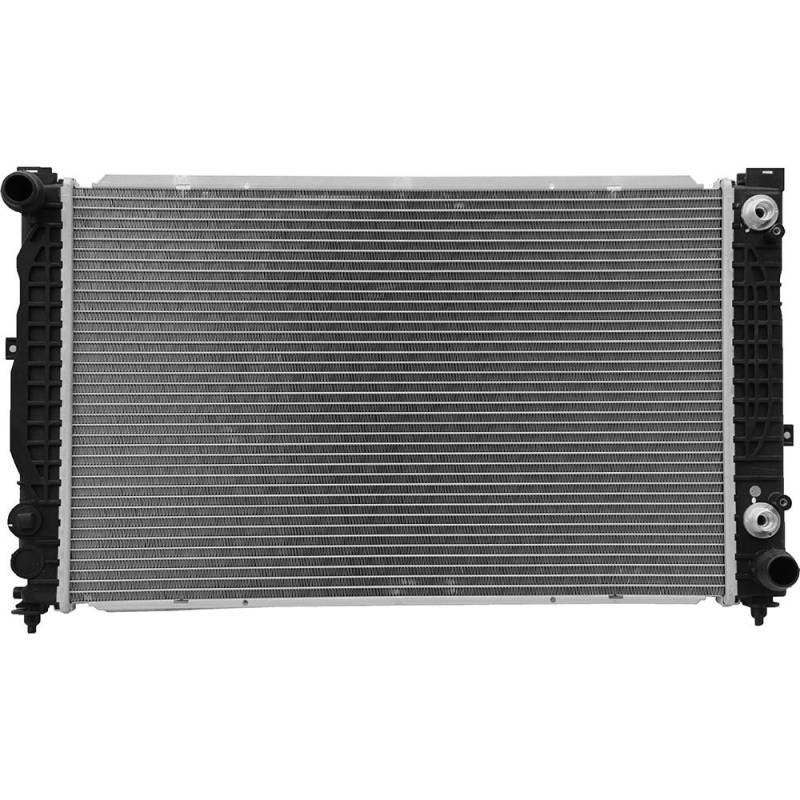 Radiator - 1996-2005 Audi A4 / A6 / Volkswagen Passat 2.8L V6This OEM replacement radiator delivers direct fit and function for the Audi A4, Audi A6, and Volkswagen Passat 2.8L V6 platforms. Features a 32mm aluminum core with plastic tanks and integrated plated transmission oil cooler for reliable crossflow cooling performance on automatic transmission equipped vehicles.