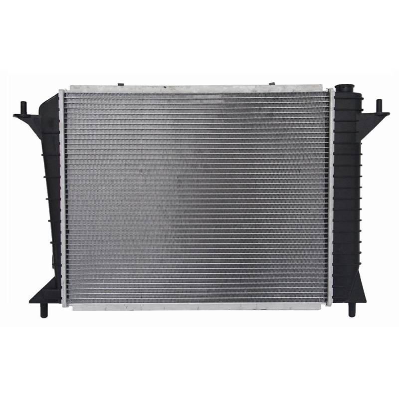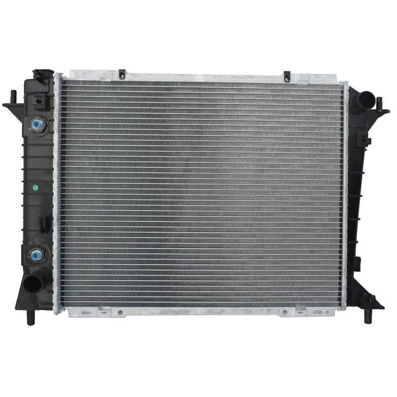 Radiator - 1994-1997 Ford Thunderbird Mercury Cougar 3.8L V6OEM replacement radiator with 26mm aluminum core and plastic tanks. Crossflow design with plated transmission oil cooler delivers reliable engine cooling. Direct bolt-on fitment for the MN12 platform. Excludes Super Coupe models.