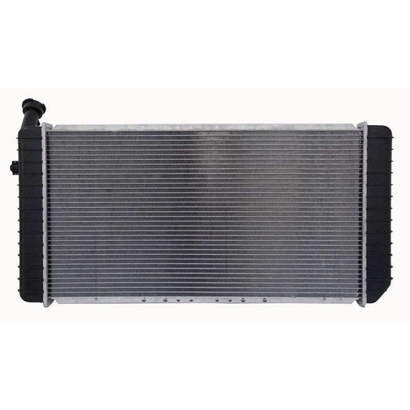 This OEM replacement radiator is designed as a direct fit for 1989-1996 Chevrolet Corvette C4 models equipped with engine oil cooler. Features a crossflow design with 32mm plastic/aluminum core and integrated plated engine and transmission oil coolers. Manufactured to original equipment specifications for OEM fit and function.