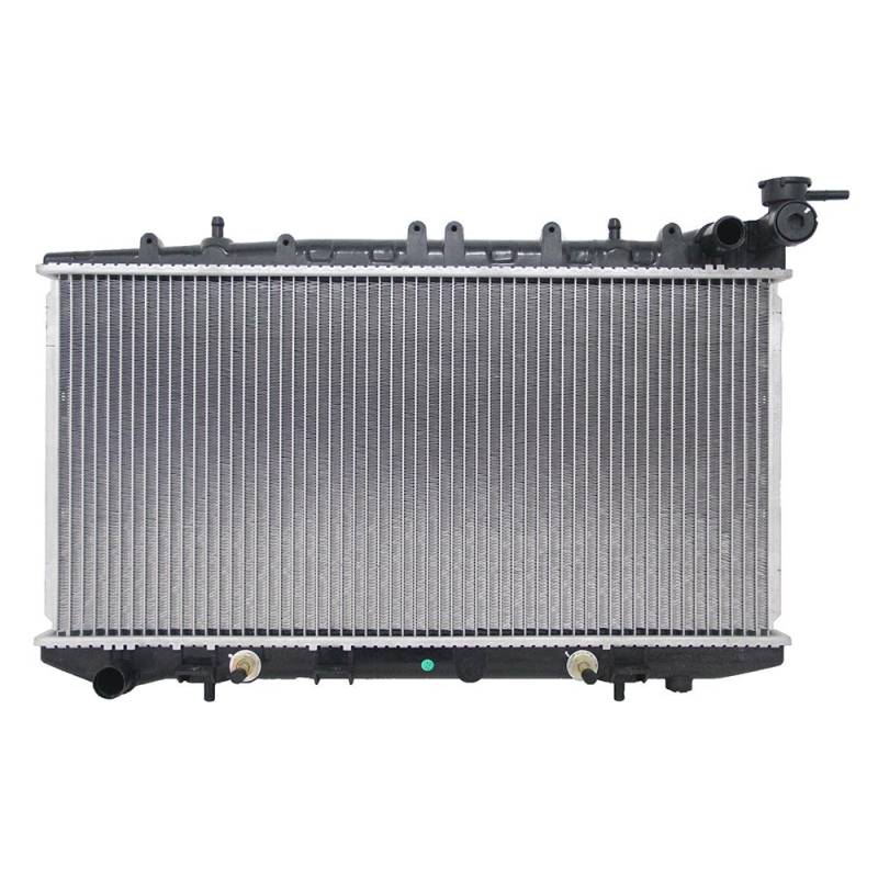 Radiator - 1991-1999 Nissan Sentra / NX / 200SX 1.6L L4This OEM replacement radiator features a downflow design with 26mm PA aluminum core and plastic tanks. Includes integrated concentric transmission oil cooler with 7/8 inch diameter for proper ATF cooling. Direct bolt-on replacement with precision mounting points and OEM quality construction for Nissan B13 and B14 platforms.