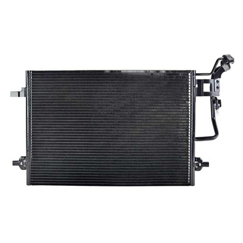 A/C Condenser - 2001-2005 Volkswagen Passat B5Direct OEM replacement A/C condenser with parallel flow design and block fitting connections. Compatible with all Passat B5 engine options in sedan and wagon body styles. Manufactured with aluminum construction for efficient refrigerant condensation and reliable cabin cooling performance.