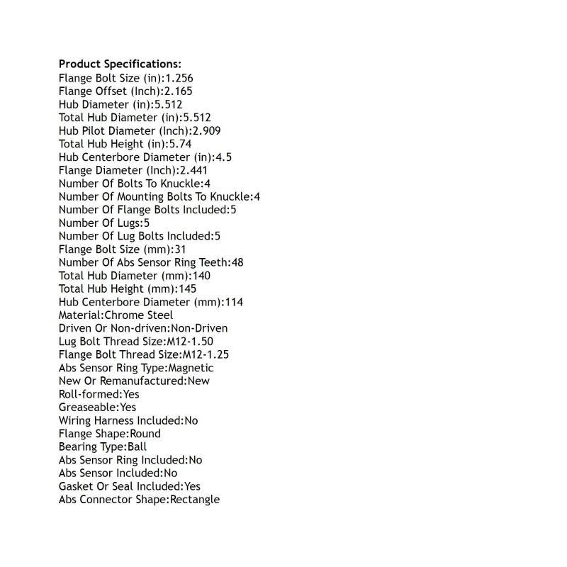 NUMBER OF LUG BOLTS INCLUDED: 5