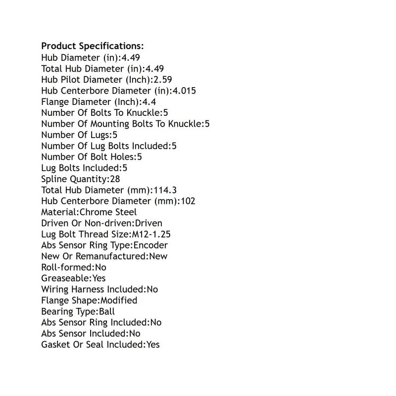 New Hub Assembly Compatible With Mazda Cx-9 2.5L 2016 2017 2018 2019 2020 2021 2022 2023 By Part