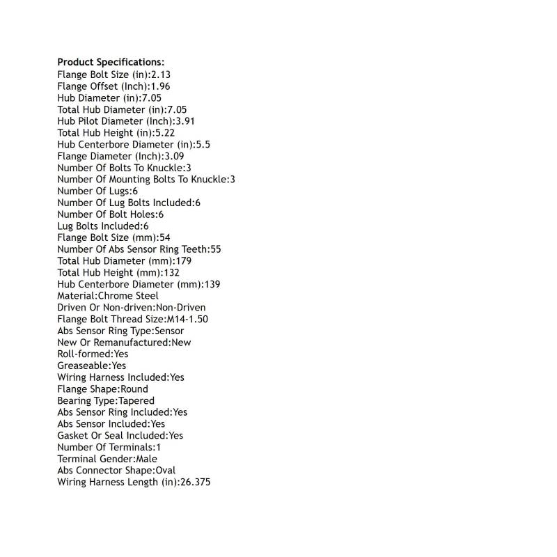 • Type: Hub Assembly