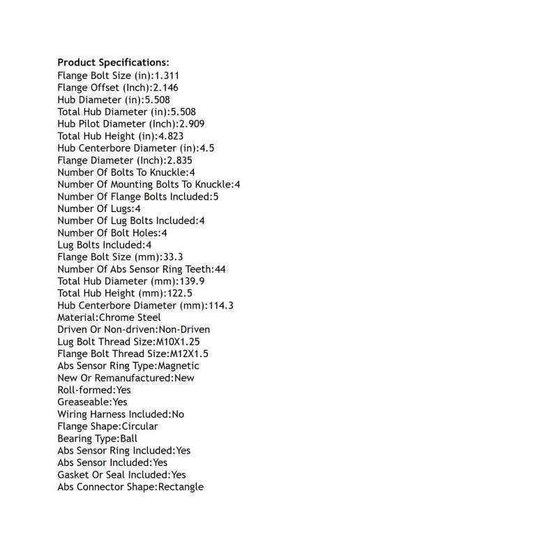 Rear Hub Bearing Assembly Compatible With 2006-2015 Mazda Mx-5 4-Lug Abs 513350 Bolt-On Direct Fit