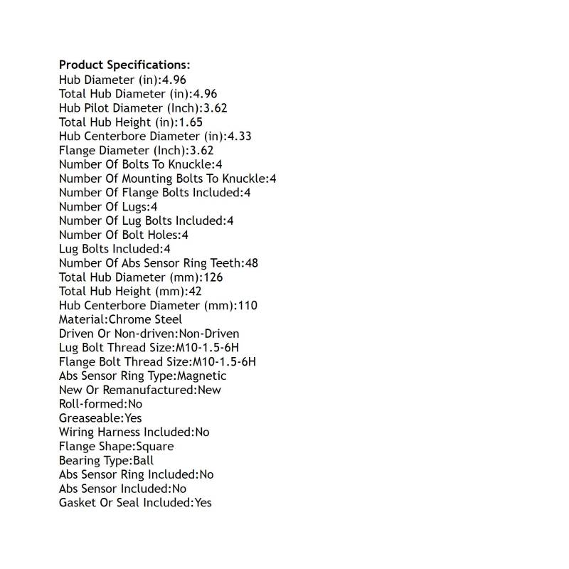 Rear Hub Bearing Assembly Compatible With 2015-2023 Mercedes-Benz C400 C350e C450 Amg 4-Lug Without