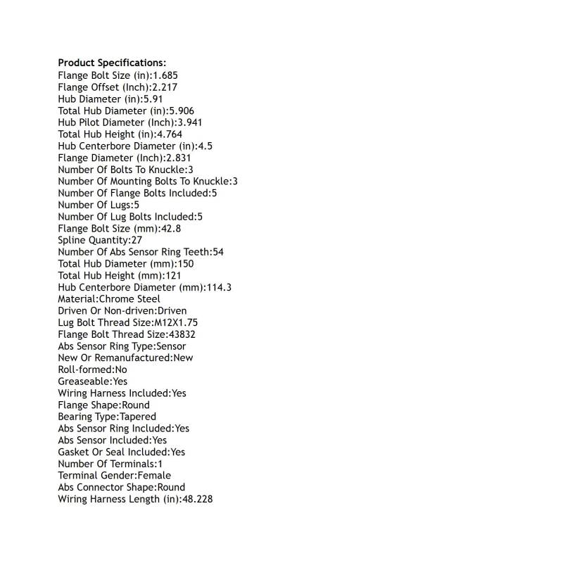 Front Hub Bearing Assembly Compatible With 2000-2002 Mazda B4000 B3000 5-Lug Abs 515013 Bolt-On