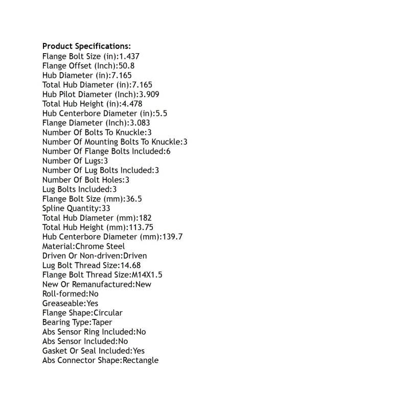 • Type: Hub Assembly