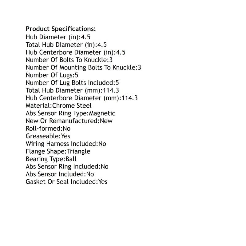 Front Hub Bearing Assembly Compatible With 2018-2023 Lexus Ux200 Ux250h 5-Lug Without Abs