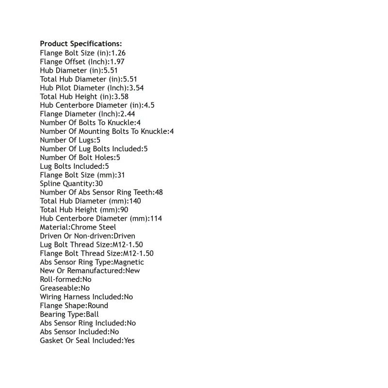 • Type: Hub Assembly