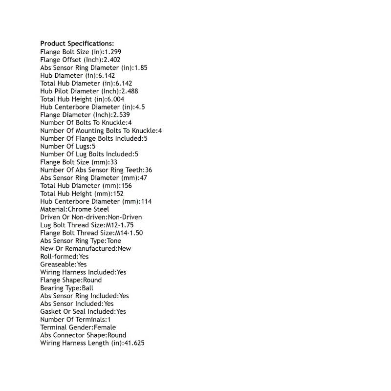 • Hub Diameter: 6.142"