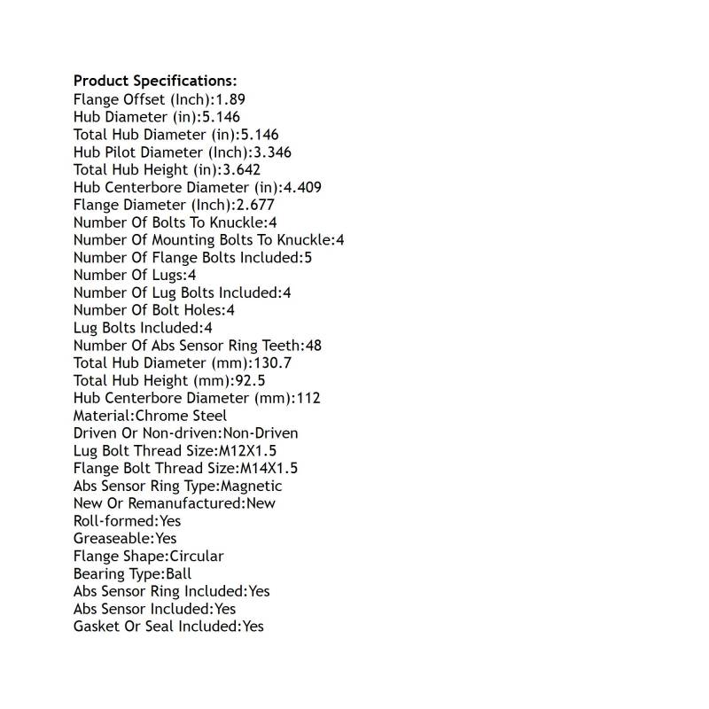 Rear Hub Bearing Assembly Compatible With 2006-2011 Audi A6 4-Lug Abs 512426 Bolt-On Direct Fit