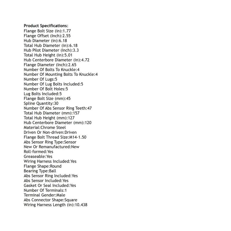 Front Hub Bearing Assembly Compatible With 2010-2017 Gmc Terrain 5-Lug Abs 512440 Bolt-On Direct Fit