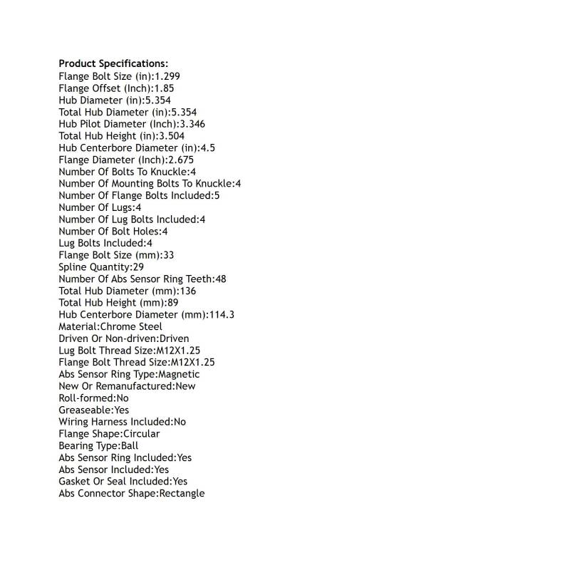 Front Hub Bearing Assembly Compatible With 2014-2023 Nissan Rogue Sport Qashqai 4-Lug Abs 513357