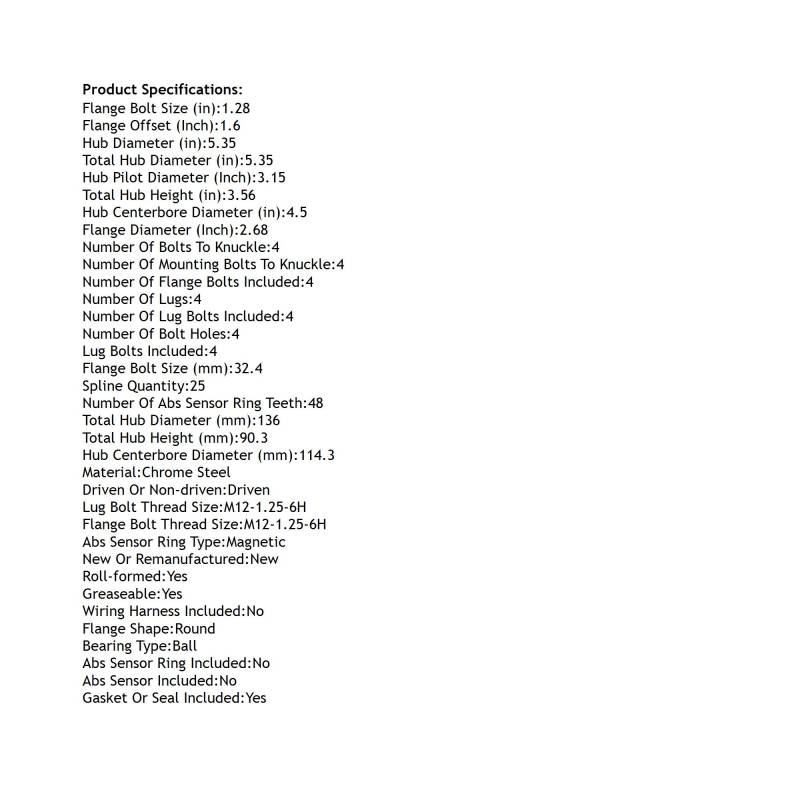 • Flange Thread: M12-1.25-6H