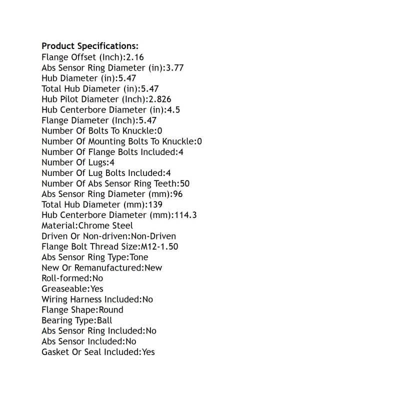 Rear Hub Bearing Assembly Compatible With 1987-1990 Acura Legend 4-Lug Without Abs 513049 Bolt-On