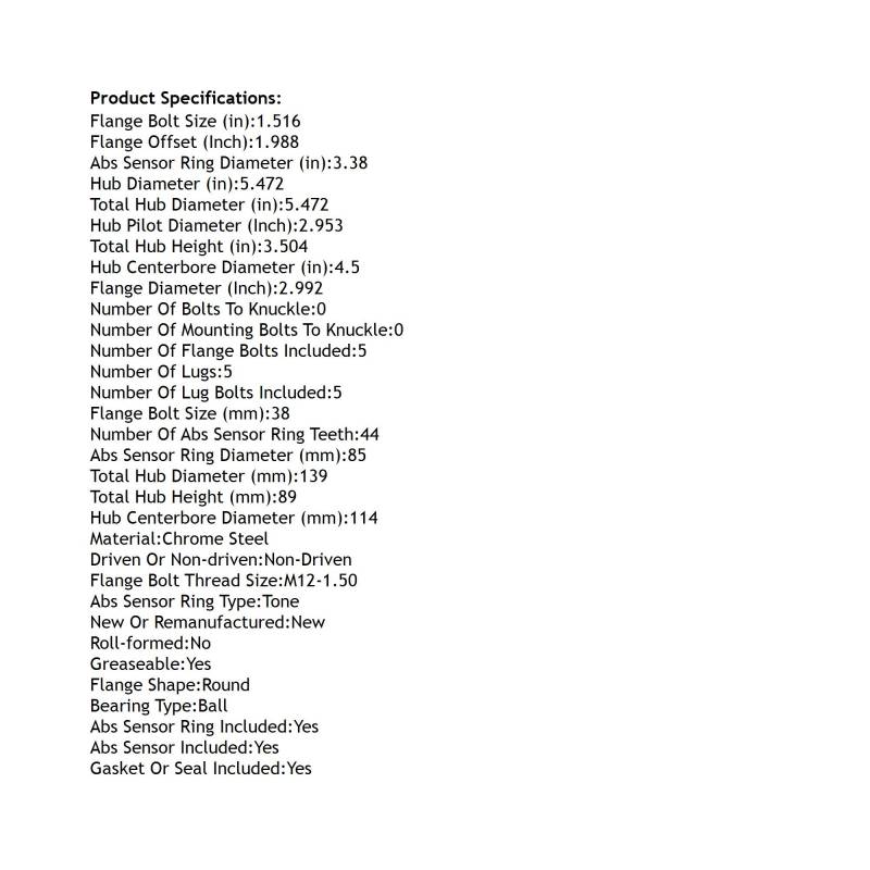 Rear Hub Bearing Assembly Compatible With 2003-2008 Hyundai Tiburon 5-Lug Abs 512428 Bolt-On Direct