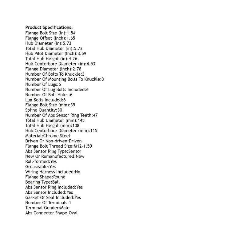 • Type: Hub Assembly