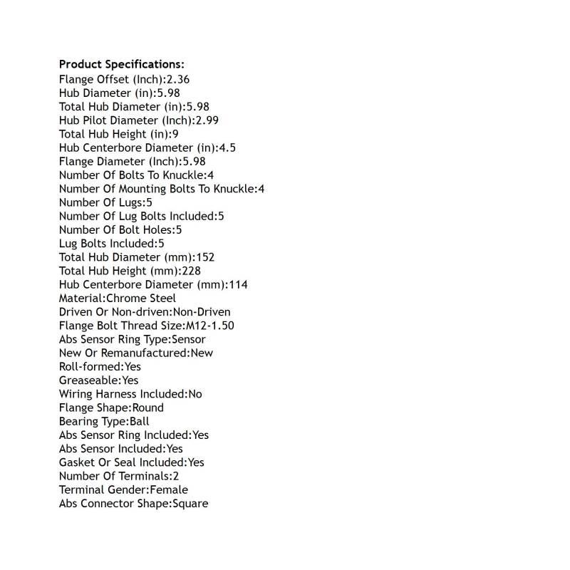 Rear Hub Bearing Assembly Compatible With 2006-2021 Lexus Hs250h Nx200t Nx300h 5-Lug Abs 512372