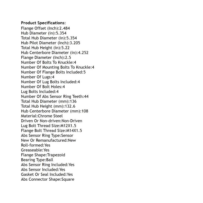 Rear Hub Bearing Assembly Compatible With 2007-2014 Volvo V70 Xc70 S60 4-Lug Abs 28373Fl00a