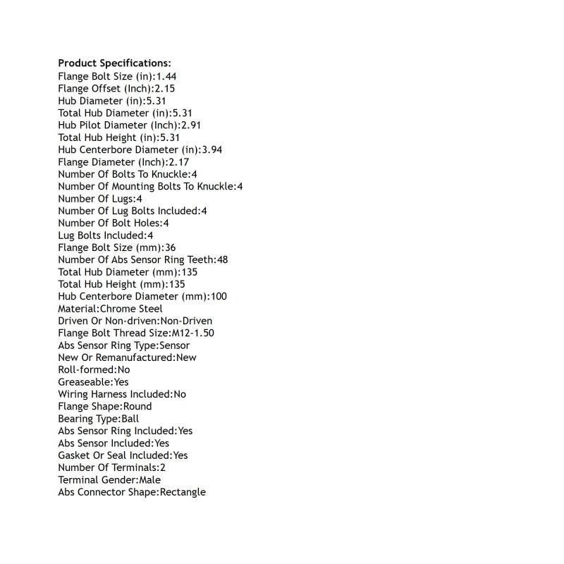 Rear Hub Bearing Assembly Compatible With 2001-2003 Toyota Prius 4-Lug Abs 512520 Bolt-On Direct Fit