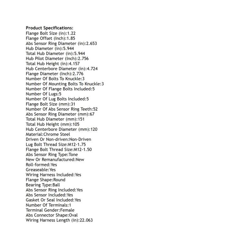 • Lug Count: 5-Lug