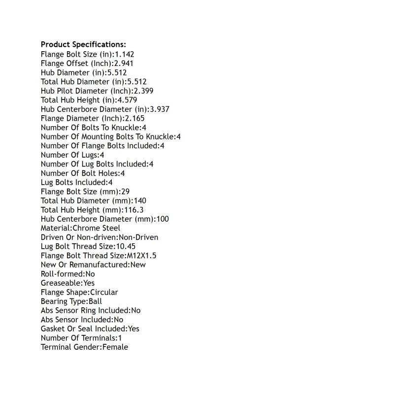 • Type: Rear Hub Bearing Assembly