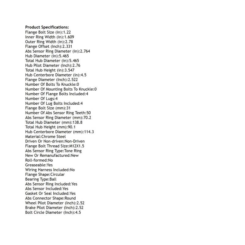 • Type: Rear Hub Bearing Assembly
