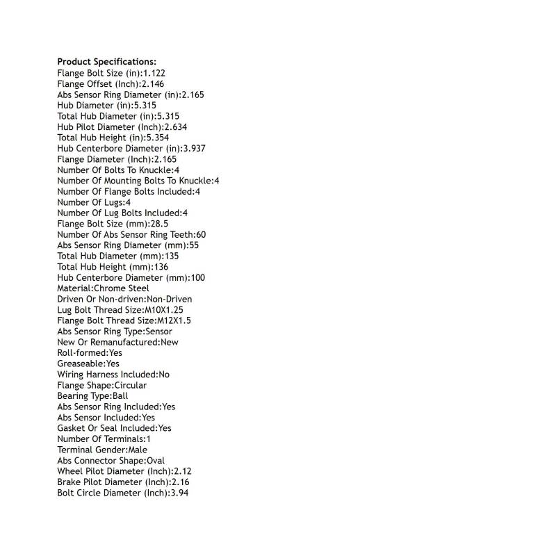ABS SENSOR RING INCLUDED: YES