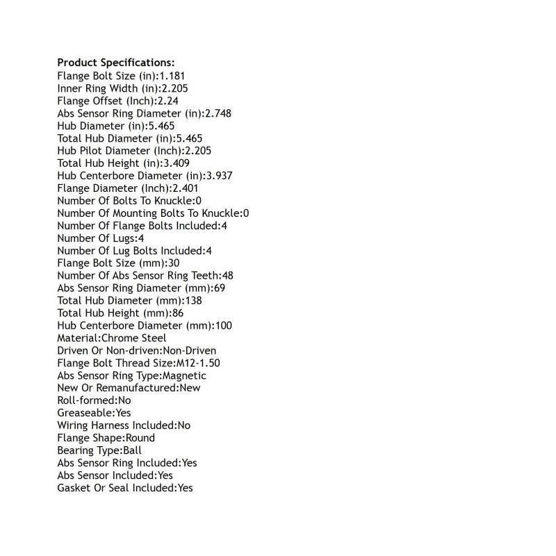 Rear Hub Bearing Assembly Compatible With 2007-2014 Honda Insight 4-Lug Abs 512323 Bolt-On Direct