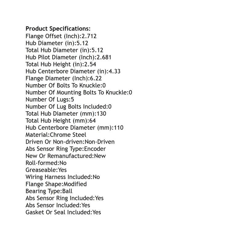 • Lug Count: 5-Lug