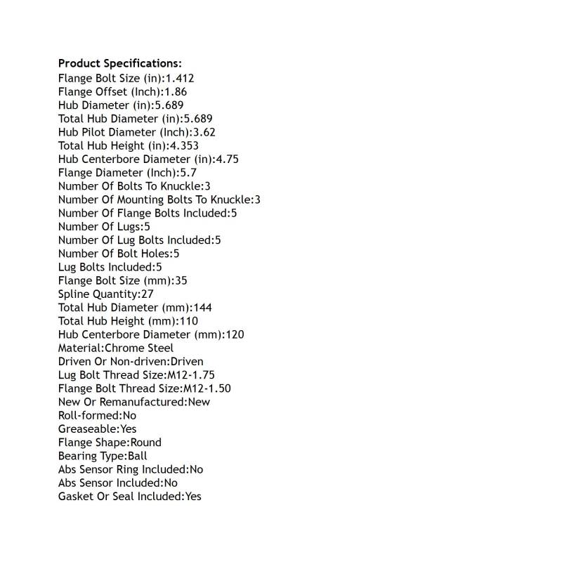 NUMBER OF LUG BOLTS INCLUDED: 5
