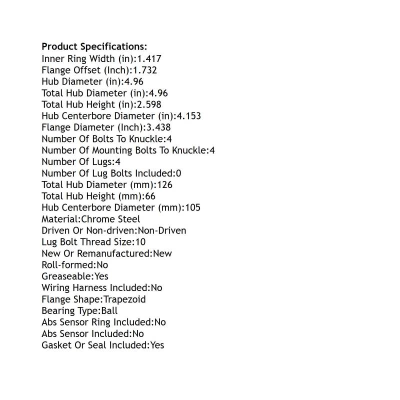 • Type: Rear Hub Bearing Assembly