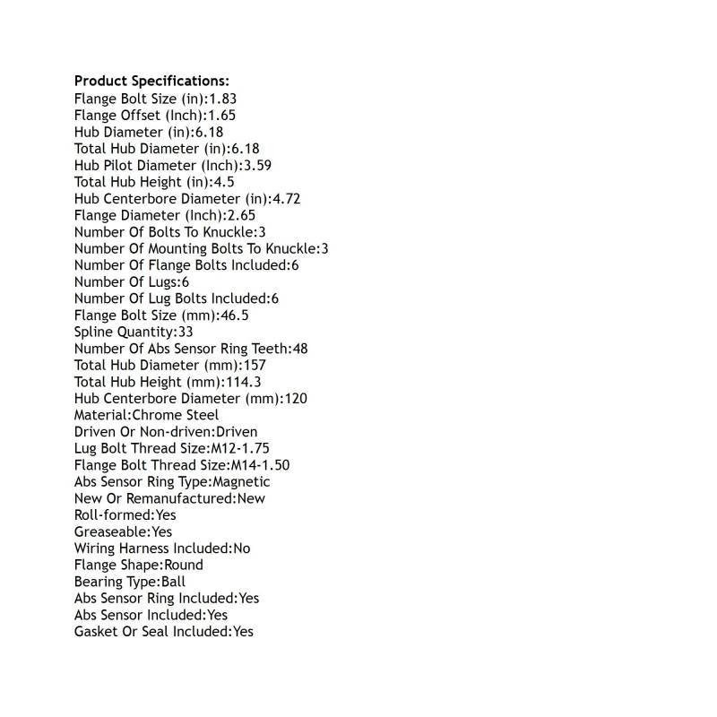 Front Hub Bearing Assembly Compatible With 2019-2023 Chevrolet Blazer 6-Lug Abs 13526554 13536583