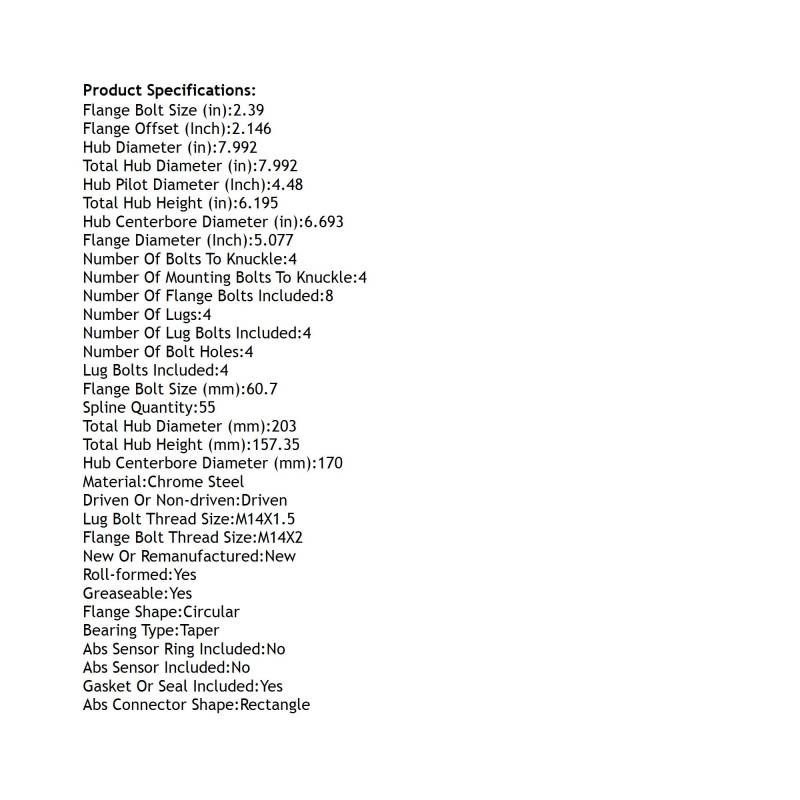 • Hub Diameter: 7.992"