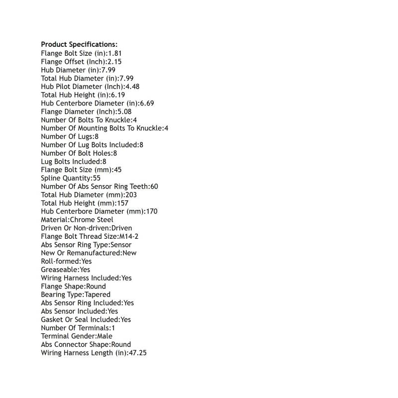 Front Hub Bearing Assembly Compatible With 1999-2004 Ford F-450 Super Duty F-550 F-250 8-Lug Abs