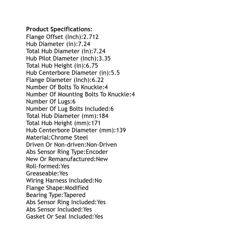 • Type: Hub Assembly