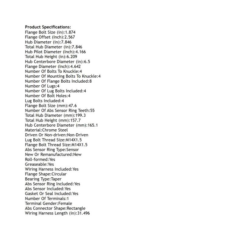 Rear Hub Bearing Assembly Compatible With 2003-2018 Chevrolet Express 4500 2500 Gmc Savana 3500