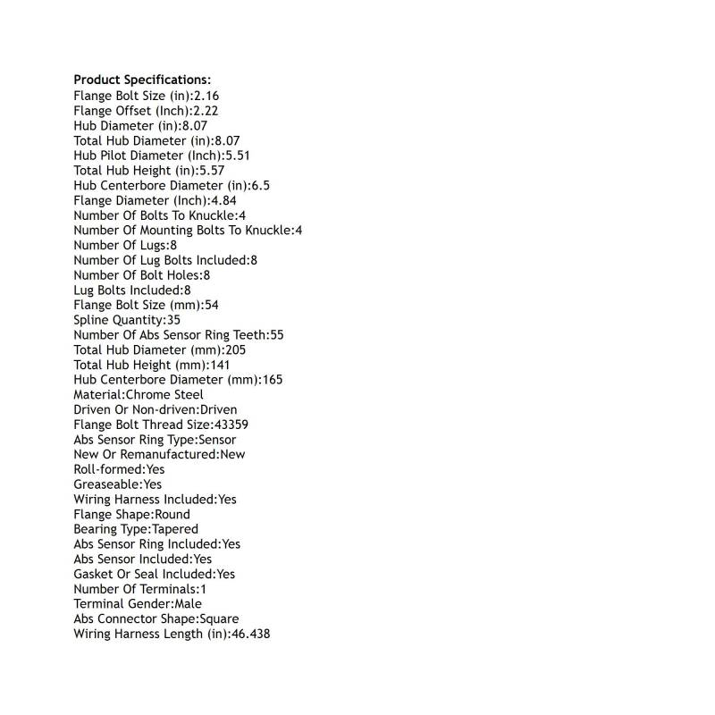 • Hub Diameter: 8.07"